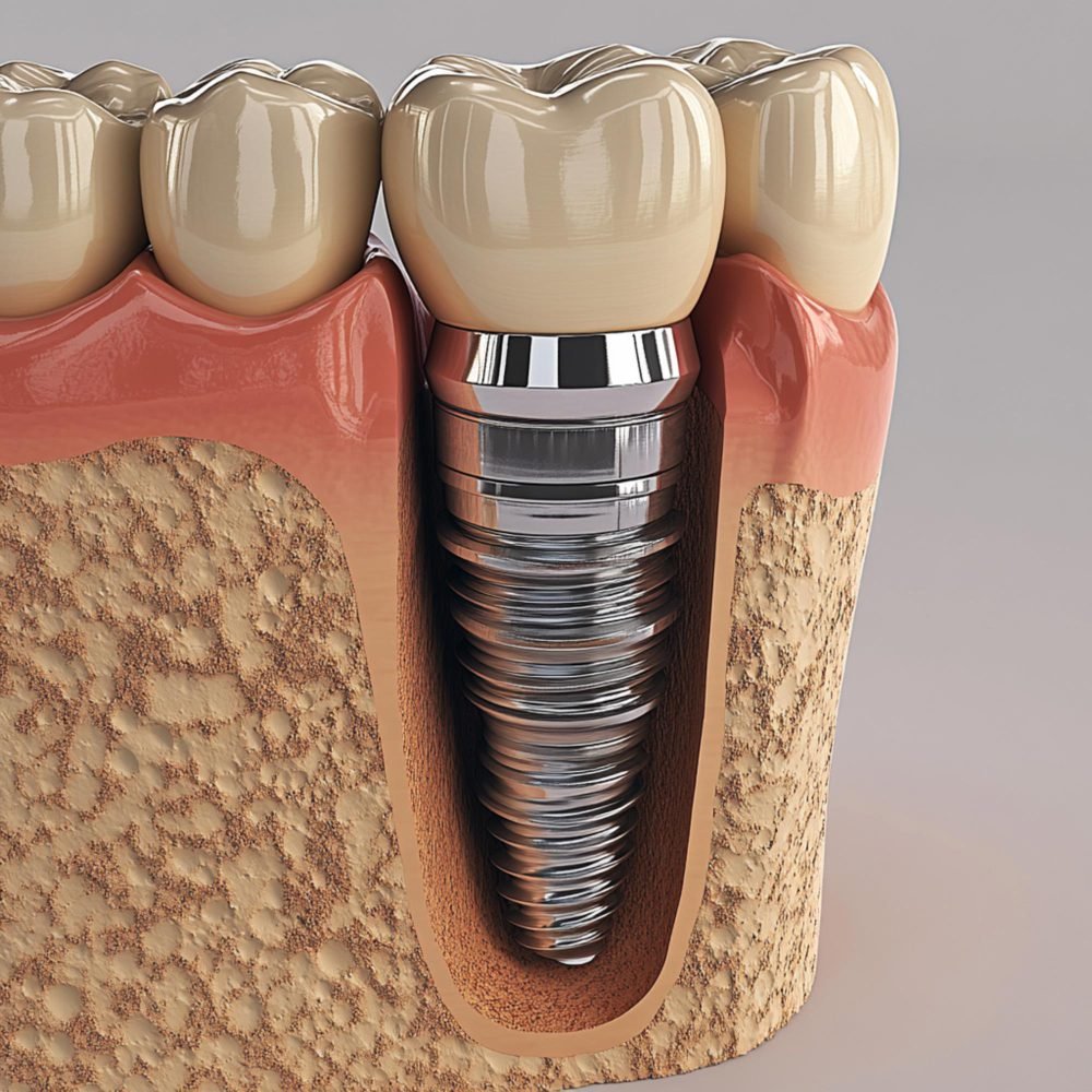 The term All-on-4 refers to a full-arch fixed prosthesis supported by four dental implants (typically made of titanium) placed in the jaw (upper or lower). The implants are strategically positioned — usually two more vertical in the anterior region and two angled posteriorly — to maximize bone engagement and avoid critical anatomical structures.